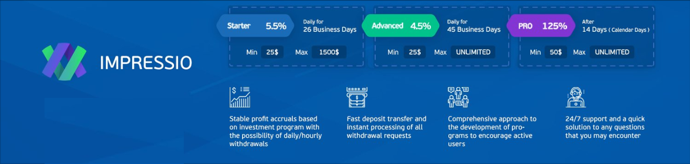 Вот почему Impressio - такой соблазнительный выбор. Существует максим, «не работайте за наличные, но пусть деньги работают на вас», в мире спекуляций. Impressio стремится вернуть вам деньги, независимо от того, каждый день, или, с другой стороны, даже ежечасно! Там, по сути, нет другого этапа, который предназначен для того, чтобы правильно позаботиться о ваших денежных средствах.